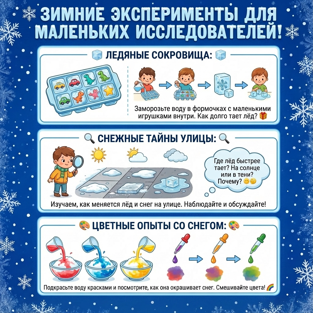 Праздники пролетели быстро, а впереди — целые зимние каникулы. Чтобы малыши не скучали и вы вместе провели время с пользой и удовольствием, делимся простыми и интересными советами в наших карточках.