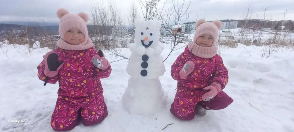 Воспитанницы средней группы Хайбуллины Эвелина и Эльвина принимают участие в городском конкурсе "Первый снежный" от местного отделения Движения Первых.